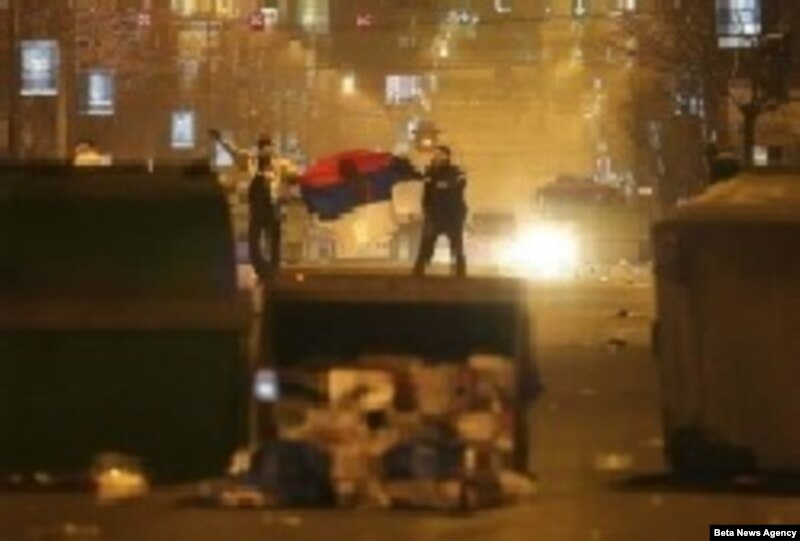 Белградтагы хәбәрчебез әйтүенчә, протест чарасы тәмамланганнан соң, берничә мең кеше “Косово – Сербиянең йөрәге!” дигән шигарләр кычкырып, чит ил илчелекләренә һөҗүм итә башлаган. Һөҗүмчеләрнең алгы сафында футбол җанатарлары булган.