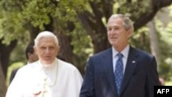 Rim papası Benedikt XVI, ğadäti qunaqlar öçen qaralğan tärtipne bozıp, amerikan prezidentı George Buş häm anıñ xäläl cefete Lauranı Vatikan baqçasında qarşı aldı. Annarı alar söyläşü öçen izge John manarasına yünäldelär.