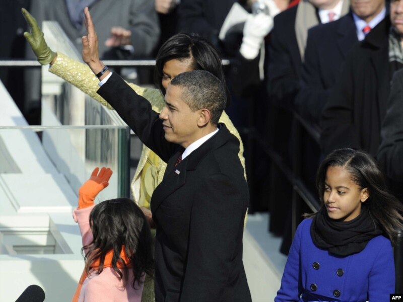 Барак Обама хатыны Мишель, кызлары Малия һәм Саша белән Ак Йортка атлап кергәндә аларның шәхси әйберләре анда инде урнаштырылган иде.