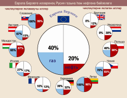 Европа Берлеге илләре газның чиреген Русиядән ала, шуның 4/5 өлеше Украина аша килә. Низагка кадәр дә шулай иде, низагтан соң да шулай калды.