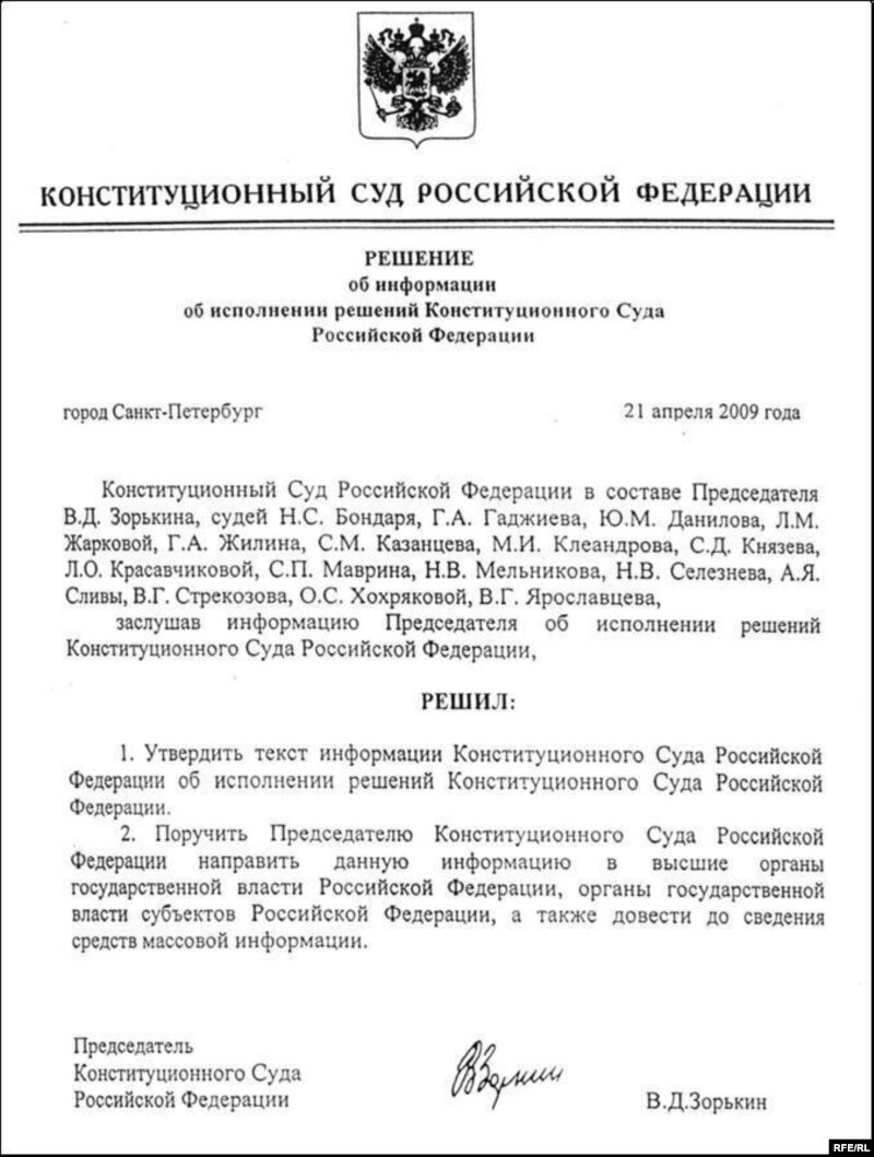 КМ рәисе Валерий Зорькин тиешле карарны 21 апрельдә үк имзалаган. Бу турыда хәбәр сишәмбедә генә таралды.