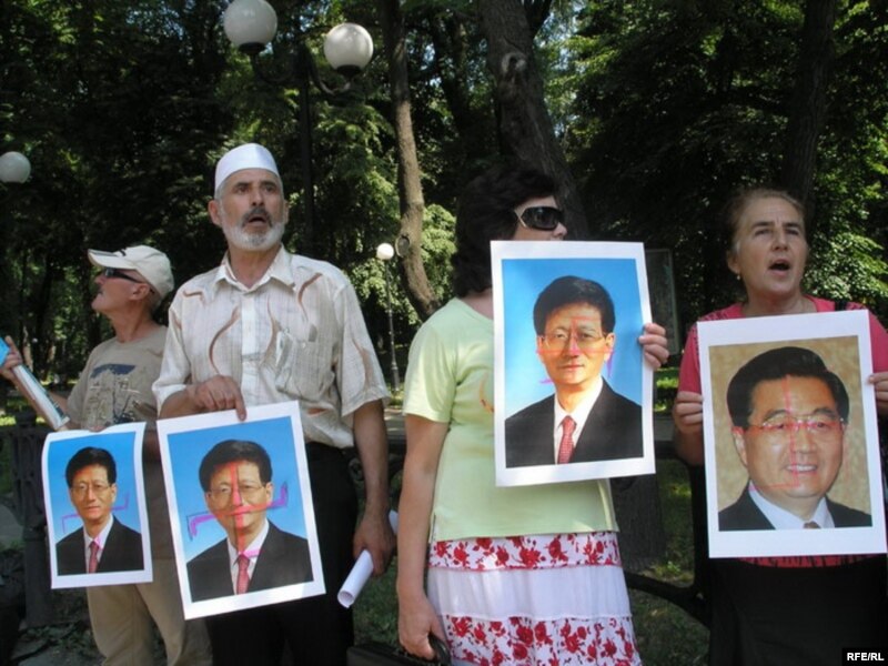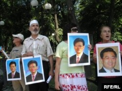 Пикетчылар акция барышында Кытай җитәкчесе Ху Дзинь Тау, саклану министры рәсемнәренә нацист свастикаларын ясап, аларны яндырды.