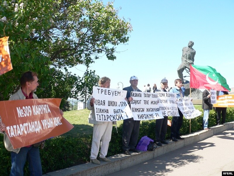 Аларда исә “178 нче мәктәп татарныкы булырга тиеш”, “Казанга татар теленең дәүләт теле икәнен белмәгән җитәкчеләр кирәкме?”, “Метшин, Һадиуллин! 18, 20 нче татар мәктәпләре балалар бакчасы биналарында урнашкан. Оят түгелме?” дип язылган иде.
