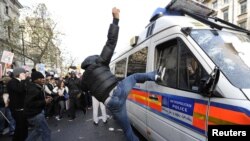 Лондон үзәгендә дистә мең укучы катнашкан протест чараларына нибары 225 полиция хезмәткәре эшкә җәлеп ителгән иде.