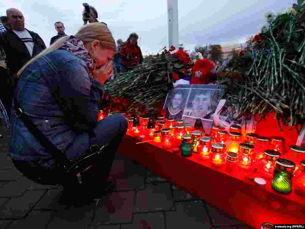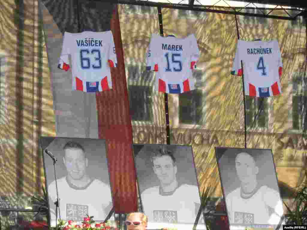 "Локомотив" такымында уйнаган өч чех хоккейчысы белән хушлашырга Праганың Искешәһәр мәйданына меңнәрчә кеше килде.