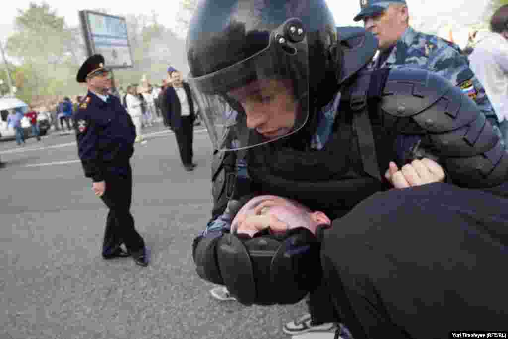 Мәскәүдә оппозициянең зур митингы узарга тиеш булган Сазлык мәйданы янында протест белдерүчеләр белән полиция бәрелеште.