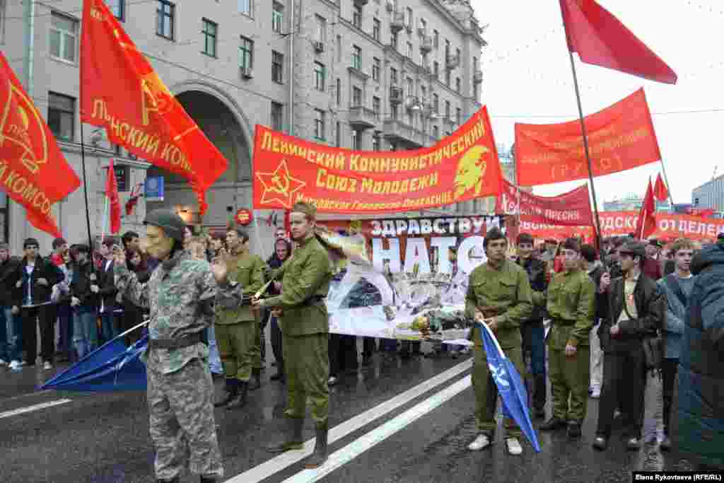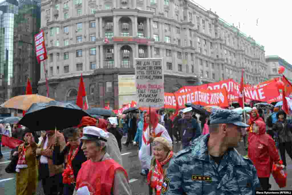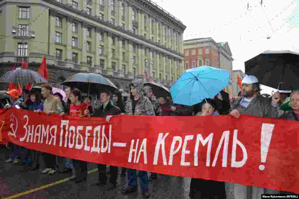 9 май көнне Мәскәүдә коммунистлар партиясе "Гадел сайлаулар" өчен каршылык чарасы үткәрде. Аларга оппозициянең башка вәкилләре дә кушылды. Чарада катнашучылар "Безнең бабаларыбыз сугышты, ә сез урлап бетердегез!", "Путин - карак!" дигән шигарләр яңгыратты.