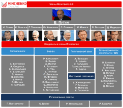 Minchenko consulting коммуникация ширкәте башлыгы Евгений Минченко һәм Сәяси экспертиза халыкара институтының аналитика бүлеге мөдире Кирилл Петров “Владимир Путинның зур хөкүмәте һәм Политбюро 2.0” исемле зур хисап тәкъдим итте. 10 битлек хисап илнең сәяси һәм бизнес элитасын вәкиллек итүче 60-тан артык белгечнең фикерен сорашу нигезендә әзерләнгән.