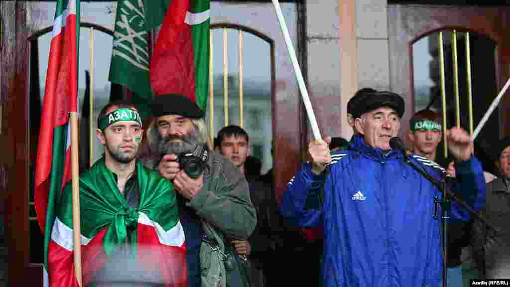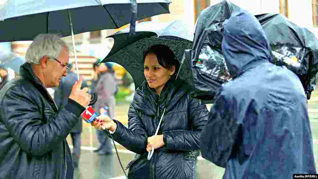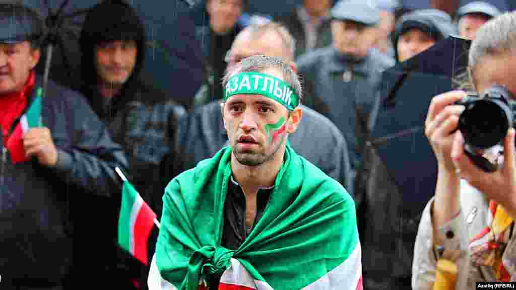 Татарстан башкаласында көнозын яңгыр явып торуга карамастан Хәтер көнендә Ирек мәйданына йөзләрчә кеше җыелды. Татар иҗтимагый үзәге вәкилләре, “Азатлык” татар яшьләре берлеге егетләре һәм килгән халыкның күпчелеге чараның башыннан азагына кадәр булды. [Рөстәм Исхакый фотолары]