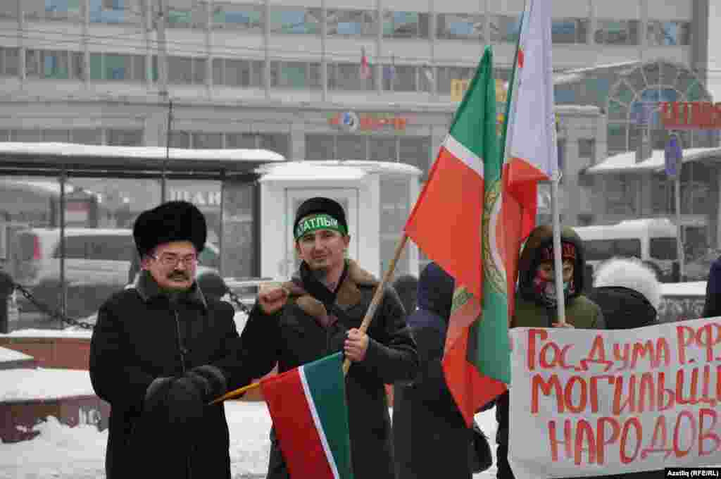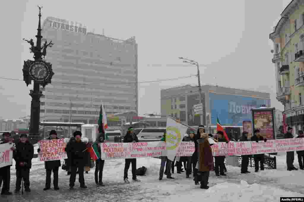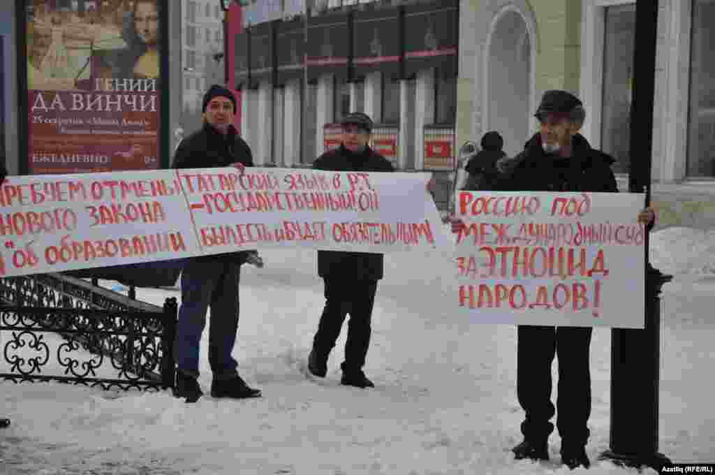 1 декабрь көнне Казанда милли телләрне мәҗбүри укытуны бетерүгә каршы урам чарасы үтте. Казанның Бауман урамында узган пикетта милли хәрәкәтнең утызга якын активисты катнашты. [Илдар Габидуллин фотолары]