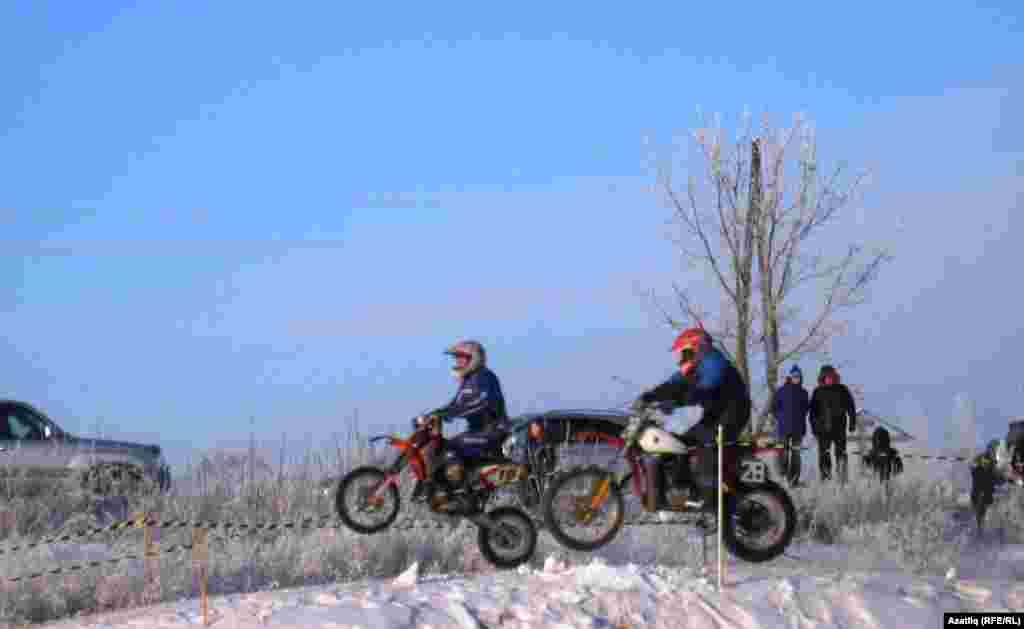 Удмуртиянең Завьялово районында йөзләгән малай һәм егетләр мотоциклларда кышкы юлда узышты. Ярышларга 7-20 яшьлек спортчылар җыелды. Салкыннан курыкмыйча анда республика спортчыларыннан тыш Киров, Пермь төбәкләреннән, Татарстаннан да егетләр катнашты. [хәмидә гайфуллина фотолары]