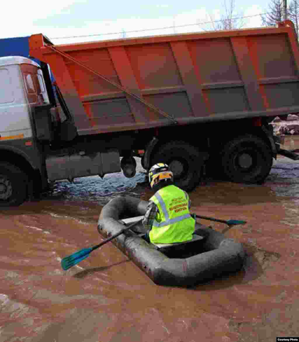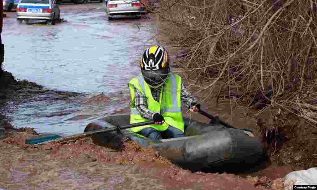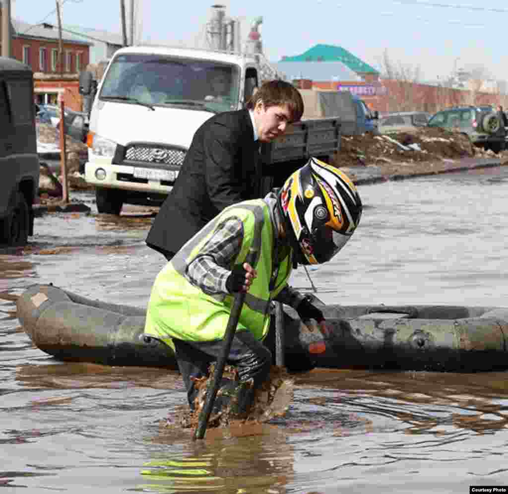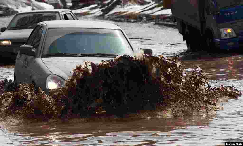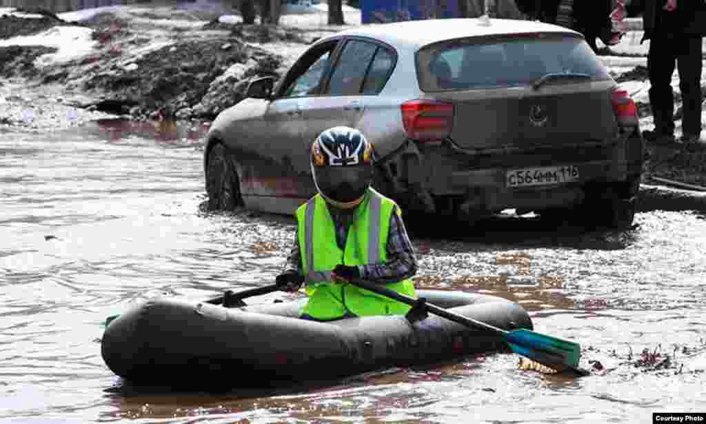 Универсиада белән бар дөньяны шаккатырырга җыенучы Казанны яз җитү белән тагын су баса башлады. Машина йөртүчеләр федерациясе вәкилләре шәһәр хакимиятен юлларны төзекләндерүгә тиешле игътибар бирмәүдә гаепли. Күптән түгел әлеге оешма вәкилләре су җыела торган урыннарга игътибар җәлеп итү өчен башкаланың Гадел Кутуй урамындагы күлләвеккә көймә белән чыкты. [Фотолар http://mik25.livejournal.com сәхифәсеннән алынды]