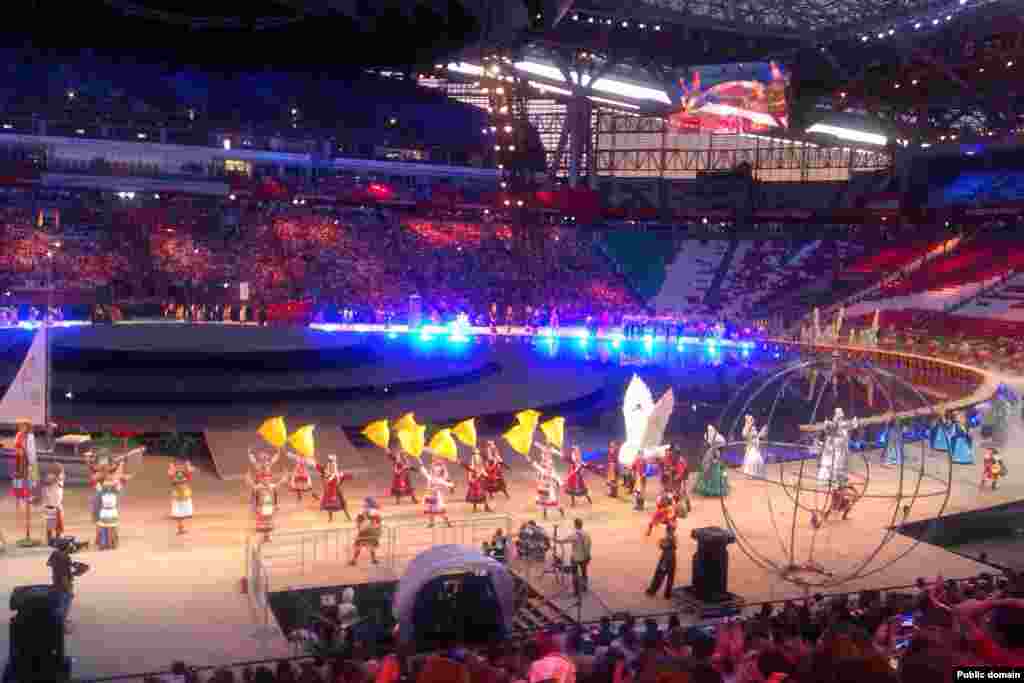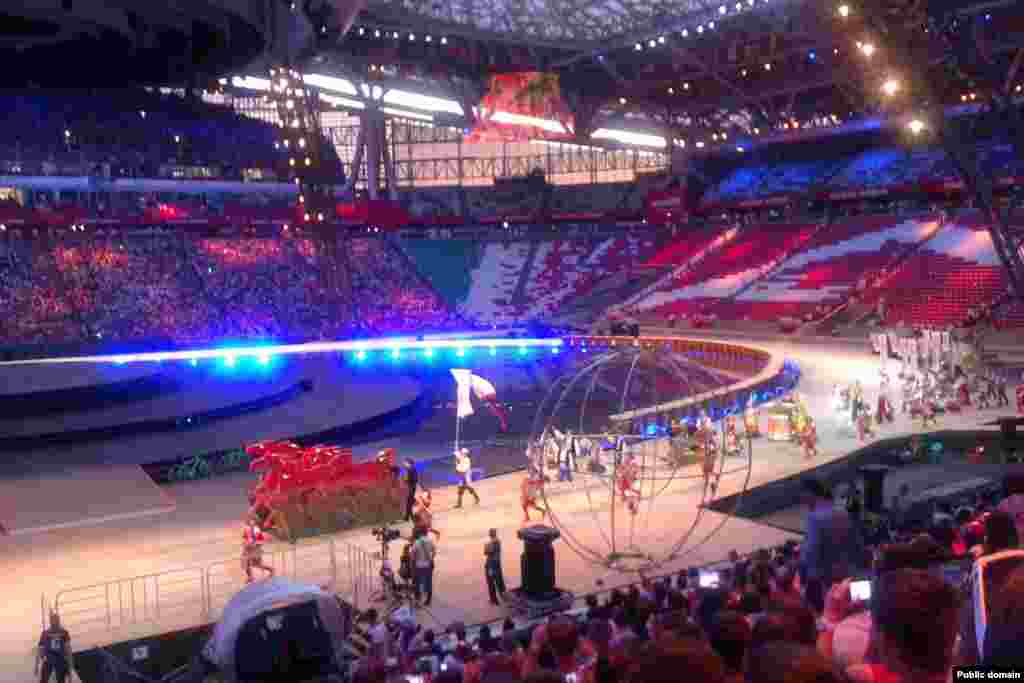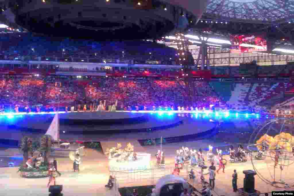 4 июльдә Kazan-Arena стадионында Универсиада ачылышын сынау үтте. Тантанада 70ләп иҗат төркеме һәм 1.5 мең кеше катнаша. Ачылыш 6 июльдә Казан вакыты белән 21 сәгать 30 минутта башлана. Әлеге фотолар социаль челтәрләрдән (Facebook, Twitter, LiveJournal, Instagram) алынды.