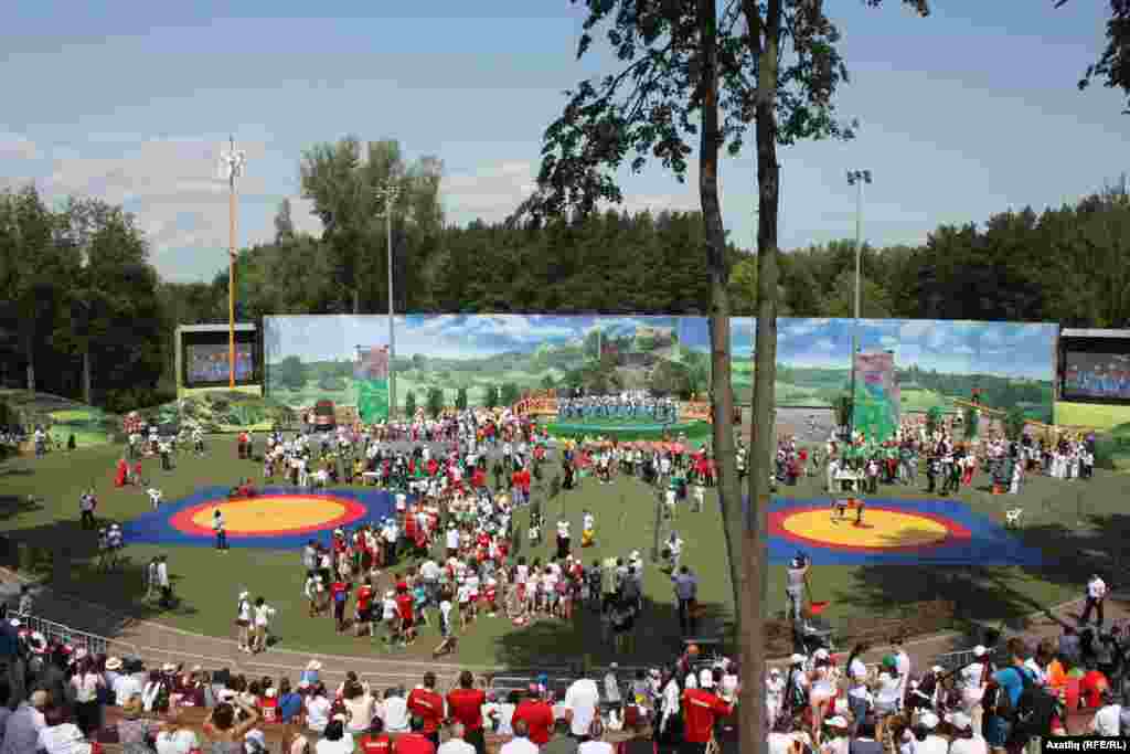 Быел Казан Сабантуе Универсиадага туры китереп бераз соңрак үткәрелде. Сабантуйга килгән меңнәрчә кунак арасында Универсиадага килгән чит ил вәкилләре дә бар иде.