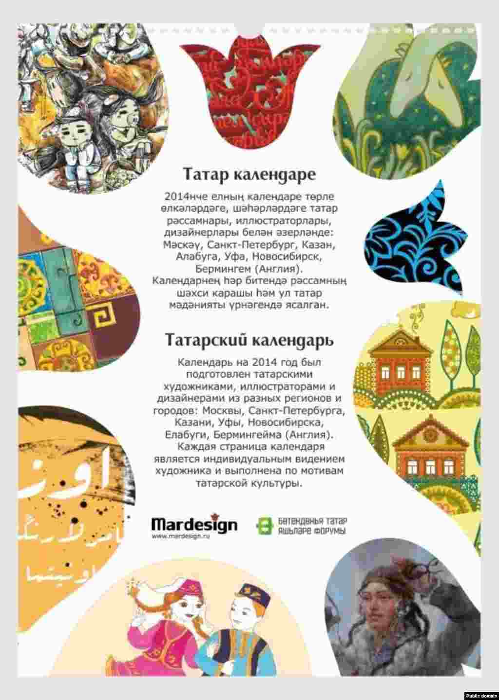 Бер төркем татар рәссамы, иллюстраторы һәм дизайнеры 2014 елга төсле календарь чыгарды. 12 айга 12 рәссамнан 12 рәсем. Ирекле сатуда декабрь башында әзер булачак.