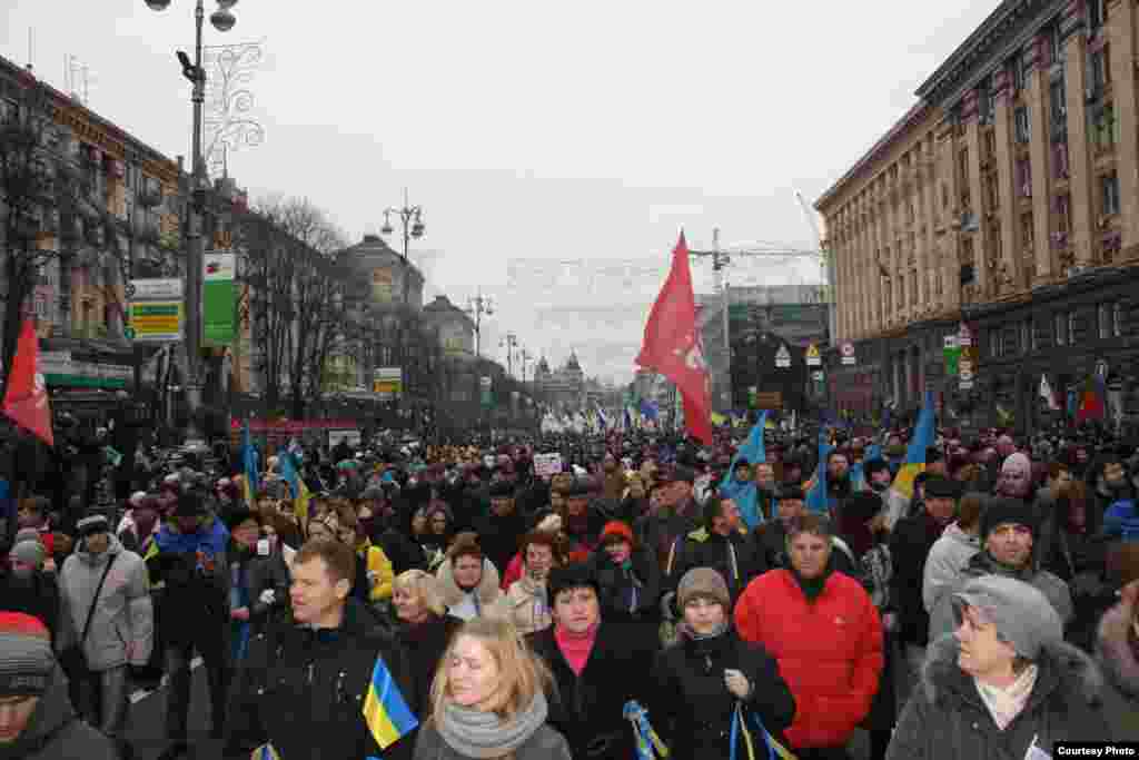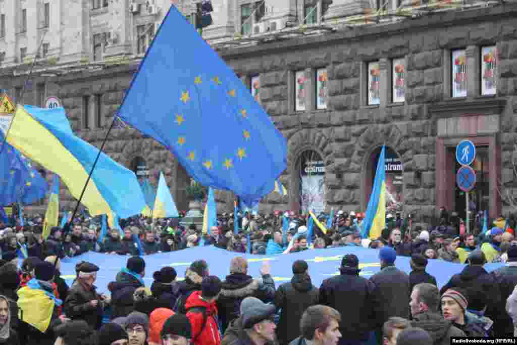 1 декабрьдә Киевта дистәләрчә мең кеше президент Януковичның Европа Берлеге белән килешү имзаламау карарына протест белдерде.