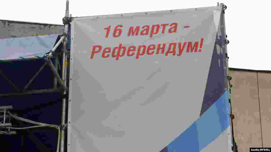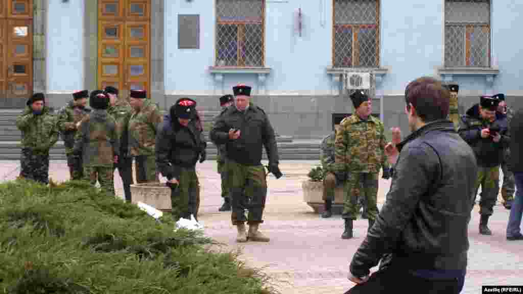 9 мартта Акмәчетнең үзәк мәйданында “Россия”, “Референдум 16 мартта” дип язылган сәхнә янында Кырымны Украинадан аерып Русиягә кушу тарафдарларының митингы үткәрелде. Кырым министрлар шурасы каршында Краснодар өлкәсеннән килгән, итекләрендә нагайкалар булган Кубань казаклары сакта тора иде.