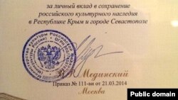 "Казан егетләре" төркеме җырчысы Айдар Әгъләмов үз диварларының мактау һәм рәхмәт кәгазьләре белән тулганын әйтә. Русия мәдәният министры Владимир Мединский имзалаган, "Кырымда һәм Акъярда (Севастопольдә) Русиянең мәдәни мирасын саклауга өлеш керткән өчен" бирелгән рәхмәт кәгазен дә башкалары янына элеп куйганнар алар.