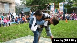 Балалар уенчык атларга атланып узышты, кашыкка йомырка куеп йөгерде, капчык сугышында катнашты, көянтә-чиләк тотып ярышты. Һәр уенда катнашу өчен чират булды. Милли көрәштә катнашырга теләүче малайлар саны да күп иде. Келәмгә басуны түземсезлек белән көтте алар. Көрәштә катнашучыга бүләк тә әзер – чын Сабантуендагы кебек, тәкә. Тик хәзер ул камырдан пешерелгән. "Элек кибетләр буйлап уенчык тәкә эзли идек. Берничә ел бакча ашханәсендә тәкәне камырдан пешерәбез. Батыр калучылар дусларын да сыйлый, өйләренә дә алып китәләр", дип сөйләде татар теле белгече Рәсилә Гатауллина. Быел бәйрәмдә катнашкан һәр төркем балалар өчен татлы ризыклар да әзерләгәннәр иде.