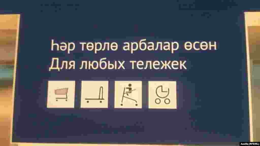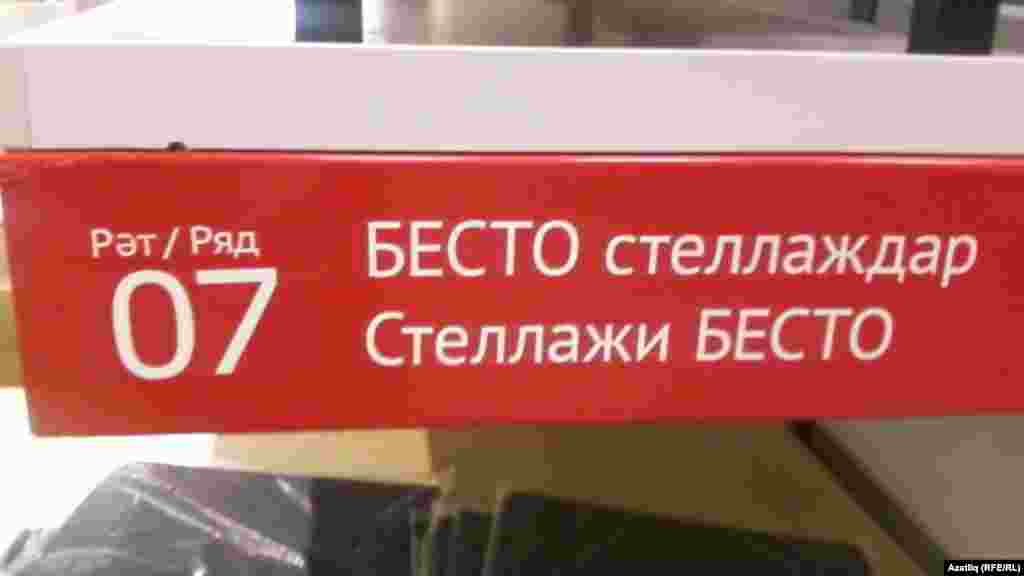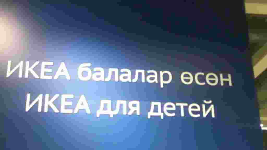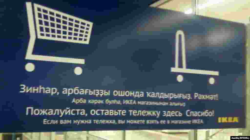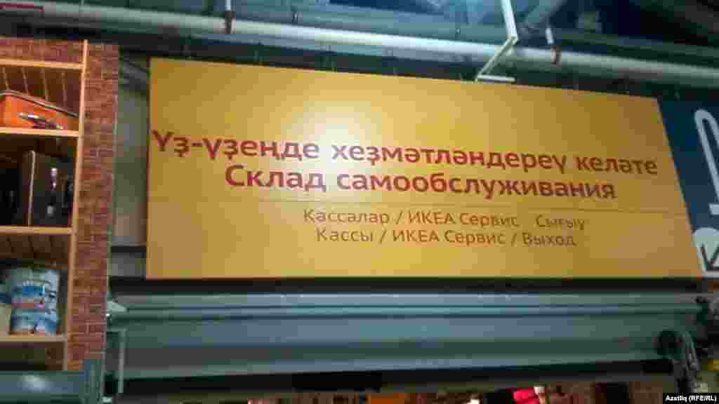 Уфадагы ИКЕА кибетендә язулар ике телдә -- башкорт һәм урыс телләрендә язылган.