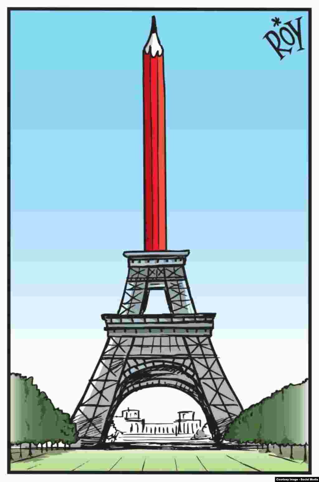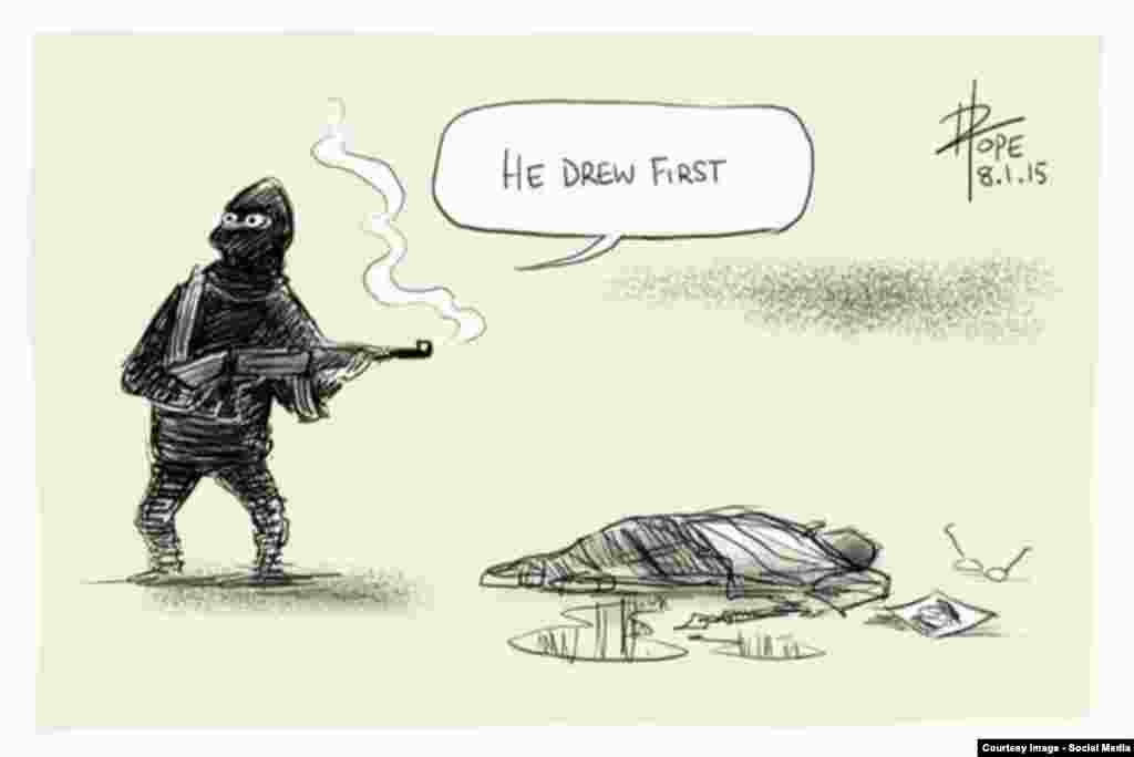 Дөньяның төрле илләрендәге сәяси карикатурачалыр Париждагы Charlie Hebdo журналы хезмәткәрләренең үтерелүенә үзләренең рәсемнәре белән җавап бирде.