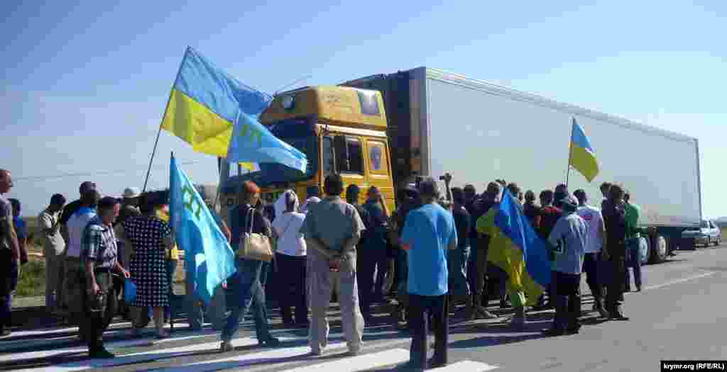 20 сентябрь кырымтатар һәм украин активистлары Чонгар, Каланчак һәм Чаплынка чик капкаларында Кырымга алып баручы юлларны ябып азык-төлек блокадасын башлады.