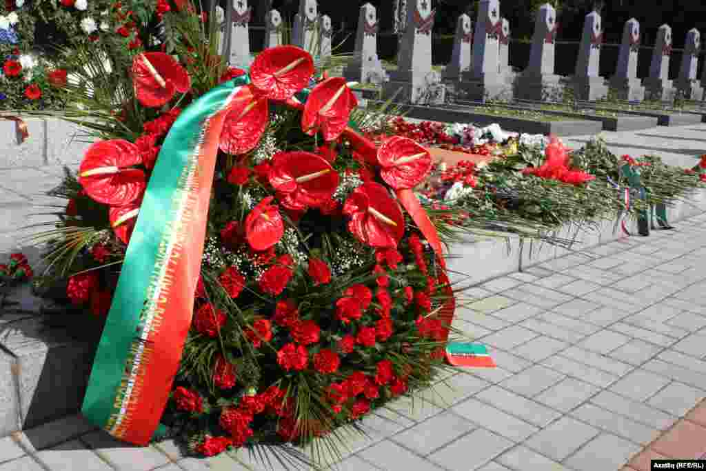 Татарстан президенты исеменнән куелган чәчәк бәйләме.