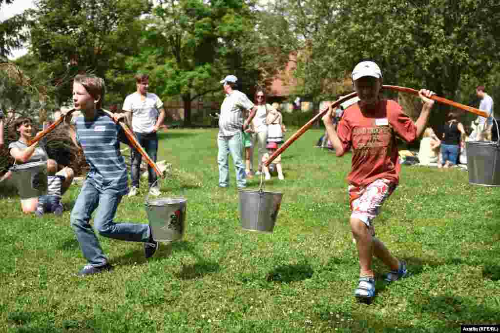 Чәй әзерләүчеләр самавырга су өлгертә алмаганда ярышларда катнашучылар суны көянтә-чиләк белән кызык өчен генә анда-монда йөгертә