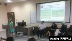 Әстерханнан Динара Мәҗитова чыгышын татарча башлап, авырсынып урыс теленә күчте. Форум рәисе татарча чыгыш ясауны сорады. "Бу - безнең өчен приципиаль", диде ул.