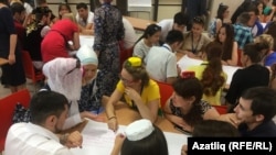 Тәбрис Яруллин бүген 60 өстәл артында 500 кеше фикер алыша, дип әйтте. “Бик оригиналь проектлар бар. Кемдер 50 проект язган. Без аларны бер базага туплаячакбыз. Instagram’ да @Kazankayniy аккаунты ачылды. Барысын да шунда элеп барачакбыз. Теләгән кеше куллана алачак”, диде Азатлыкка. Халыкның күпчелеге барыбер үзара урысча аралаша.