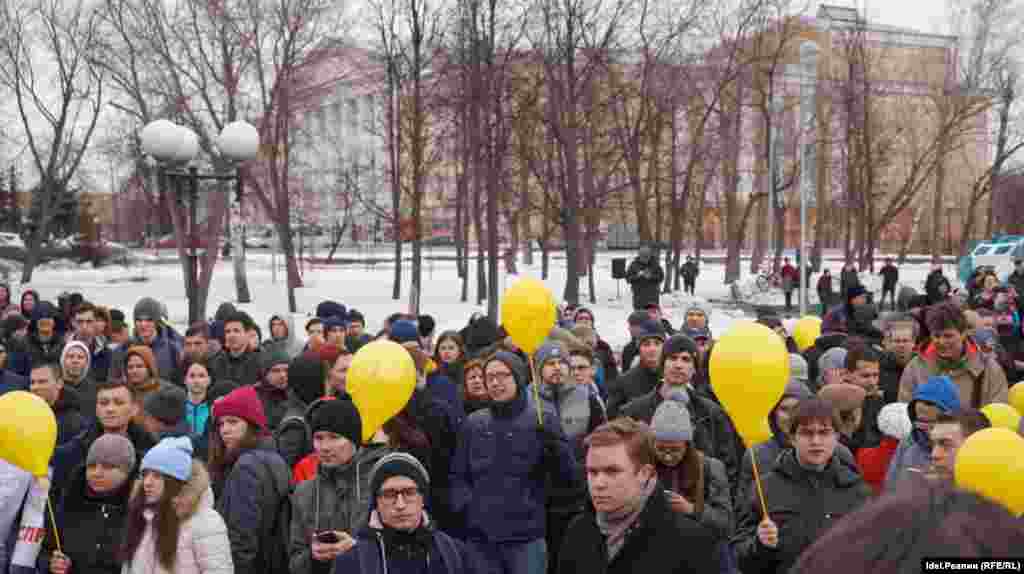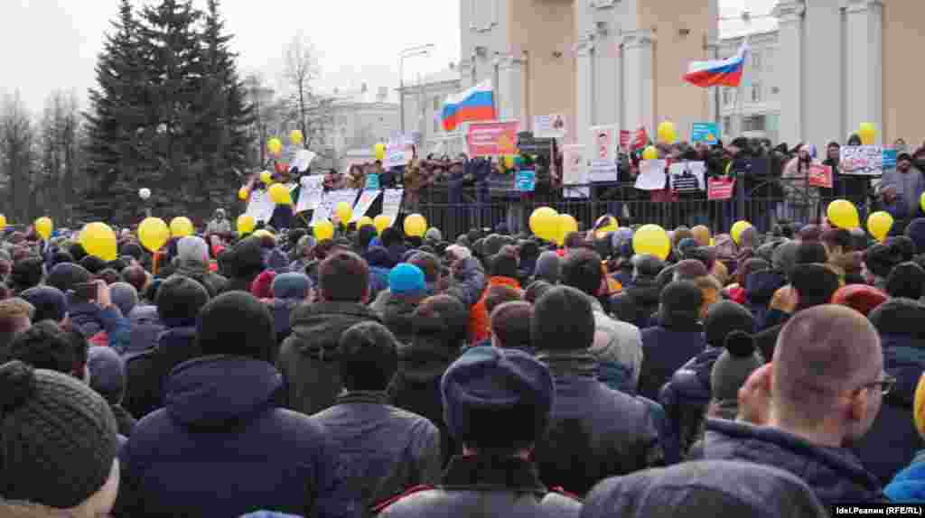 Казанда Русия премьер-министры Дмитрий Медведевның хакимияттән китүен таләп итүче митингка 500дән артык кеше җыелды.