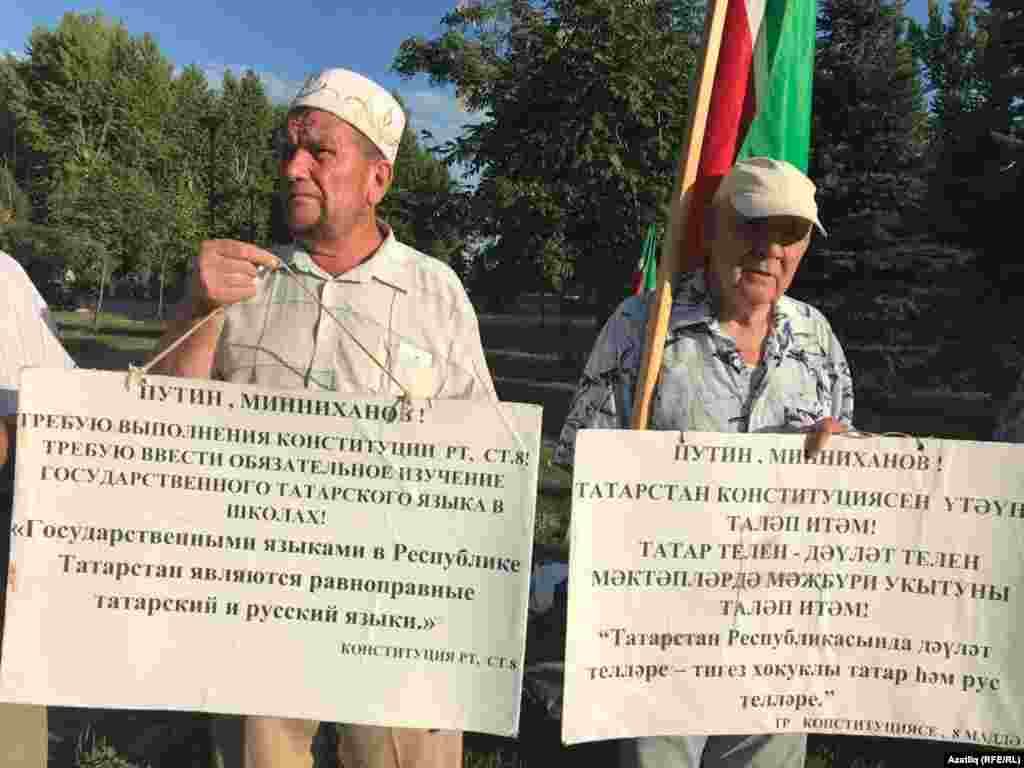 7 август Казанның Тинчурин бакчасында Татар иҗтимагый үзәге (ТИҮ) татар телен яклап пикет уздырды. Чарада күтәрелгән шигарләр Азатлык галереясында.