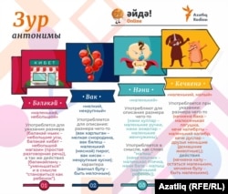 Много слов в татарском можно выразить разными способами, ведь наш язык очень богат на синонимы. В рамках рубрики "Синонимы и антонимы в татарском" мы учимся, как ещё по-другому можно сказать то или иное слово, описать событие. Мы подробно разбираем, когда и как лучше использовать конкретный синоним или антоним.