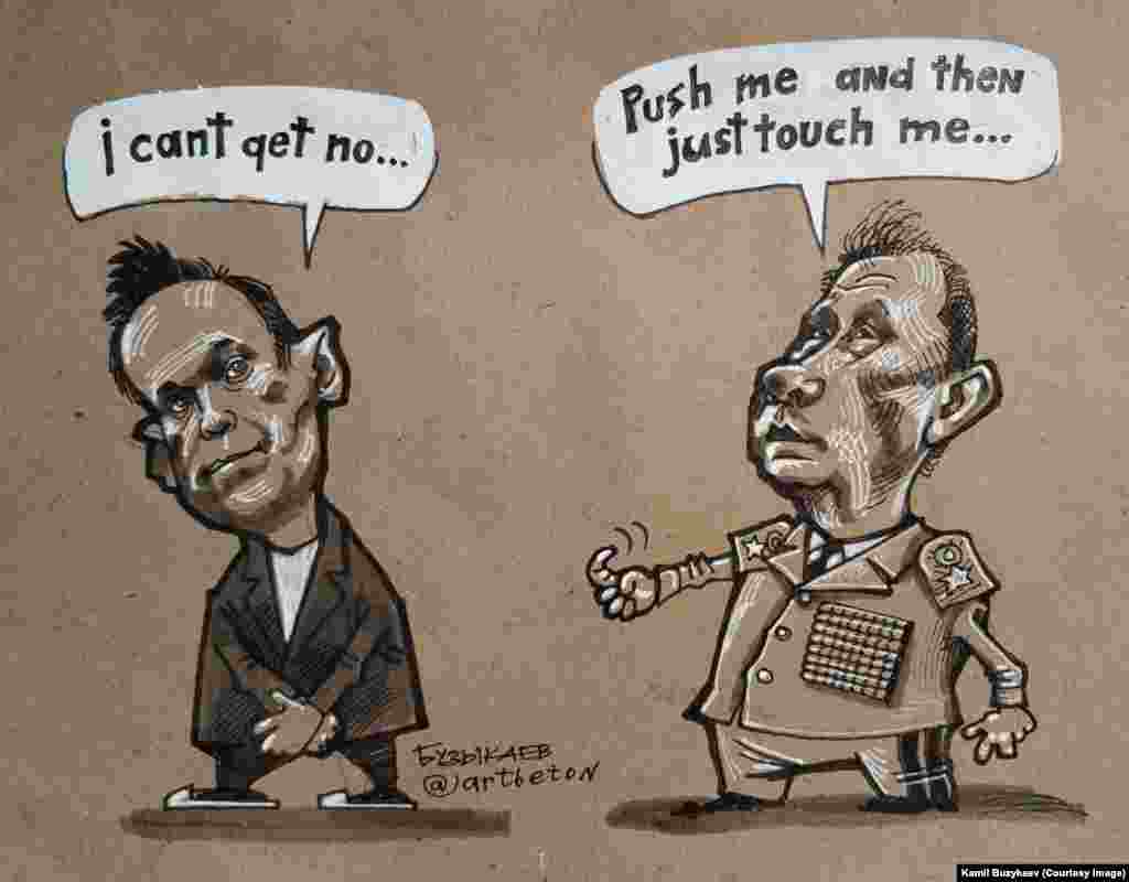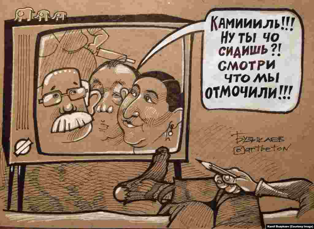 Башкортстанда яшәүче рәссам Камил Бузыкаев сәяси темаларга карикатурлар ясап танылды. Бу көннәрдә Уфада аның күргәзмәсе уза.
