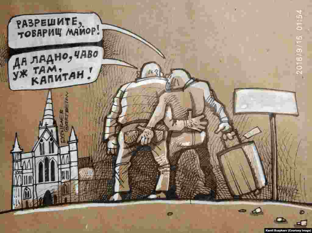 Башкортстанда яшәүче рәссам Камил Бузыкаев сәяси темаларга карикатурлар ясап танылды. Бу көннәрдә Уфада аның күргәзмәсе уза.