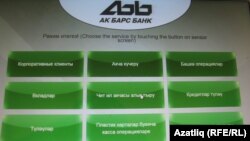 "Ак барс" банкының Чаллыдагы терминалындагы татарча язулар да әлләни мактанырлык түгел. Анда "Корпоративные клиенты", "Акча күчерү", "Башка операцияләр", "Вкладлар", "Чит ил акчасы алыштыру", "Кредитлар түләү", "Түләүләр", "Пластик карталар буенча касса операцияләре" дигән бүлекләр бар.
