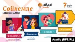 Мөлаем (ласковый, милый) употребляется в значениях: ласковый (мөлаем күз карашы – ласковый взгляд, мөлаем карт – ласковый старик, мөлаем ата – ласковый отец); милый (мөлаем елмаю – милая улыбка, мөлаем песи – милый котик, мөлаем егет – милый парень, мөлаем төш – милый сон).