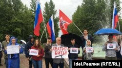 Пикетны Алексей Навальныйның Казан штабы оештырган. Урам чарасында катнашучылар "Үткәрегез, утыртмагыз!", "Кыйнаудан туктагыз!", "Мәскәүгә сайлауны кайтарыгыз!", "Миңа барыбер түгел", "Киләчәкне ОМОН белән туктатып булмый" кебек шигарьләрне кулларында тота.