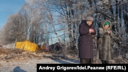 Күп сөйләдек, башкалар да сөйләсен, намаз вакыты кала дип ике татар апасы өйлә намазын укыды. Урамда, салкында. Алар гаделлек өстен чыксын иде дип дога кылабыз дип аңлата.