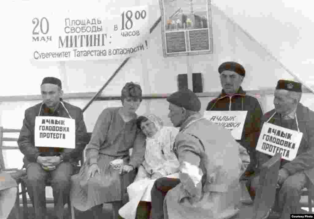 1991 елда Казанда узган сәяси ачлыкка быел 30 ел тула. Ул Ирек мәйданында 1991 елның 14 маеннан 27 майга кадәр дәвам итә. Ачлыкның төп максаты – Татарстанның мөстәкыйльлеген, суверенитетын саклап калу, республикада Русия президентын сайлатмау иде. Азатлык шул көннәрдә төшерелгән фотоларны тәкъдим итә.