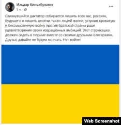 Башкорт IT-белгече Илдар Киньябулатов "кардәш илгә каршы бу сугышны канлы һәм мәгънәсез" дип атады.
