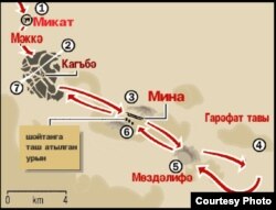 Хаҗилар Мөздәлифәдән соң пәйгамбәр Ибраһим галәһиссәламның улы Исмагыйльне корбан итәргә дип китергән җиргә - Минага кайта.